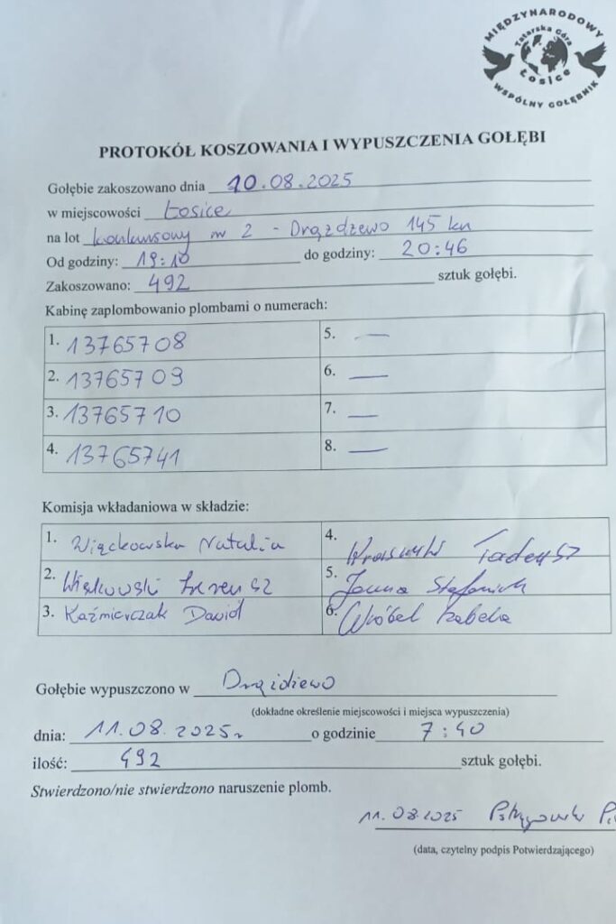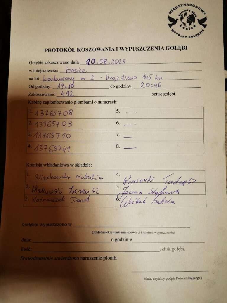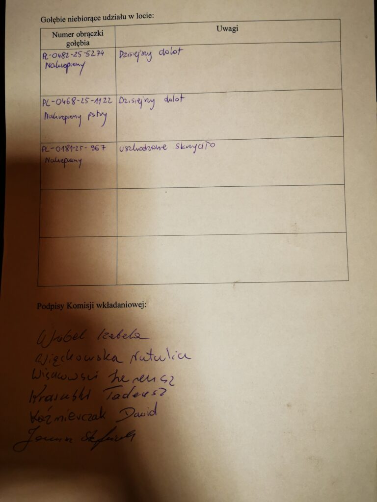 Osobą potwierdzającą wypuszczenie Gołębi będzie Kolega Piotr Pstrągowski tel.: 888 966 117.